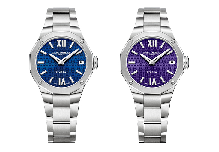 另外,M0A10727與M0A10728石英女錶則是以夏天為靈感,藍色與紫色處理的山海紋面盤,各自表現夏季豔陽照耀水面反映的色彩。直徑33mm,細緻可愛。