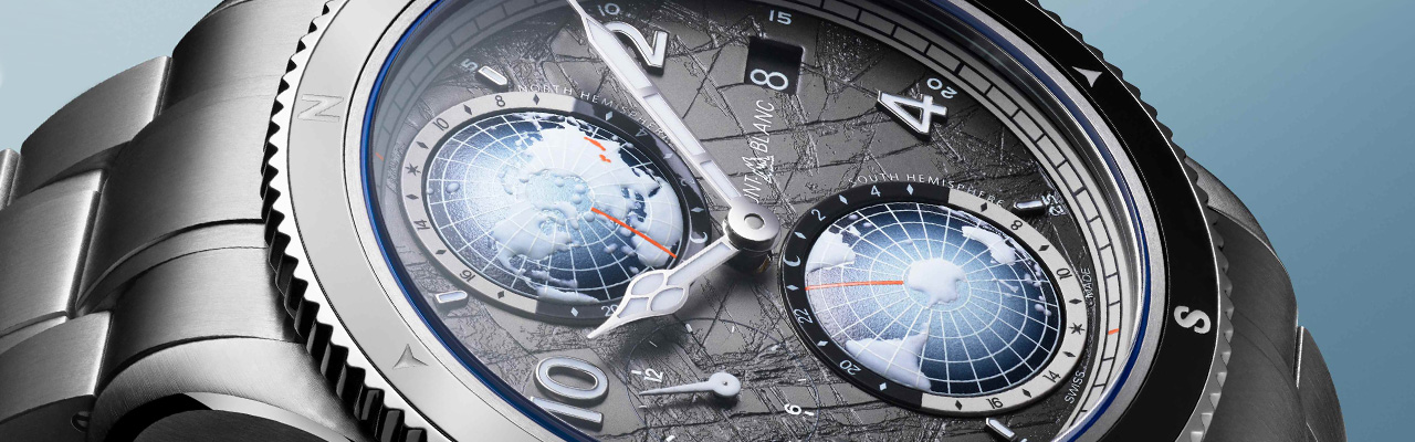 這款腕錶搭載MB 29.25自動機芯,配備自製世界時間複雜功能,包括旋轉北半球與南半球地球儀、24小時刻度、晝夜指示、雙時區顯示與日期顯示。這款腕錶配備42毫米鈦金屬錶殼,凹槽紋雙向黑色陶瓷錶圈飾以羅盤方位,搭配以橘色點綴的Sfumato深灰色冰川圖案錶盤,以及採用微調系統與梯形設計的可替換鈦金屬錶鍊。
