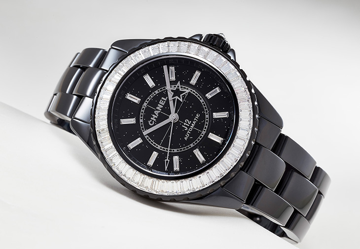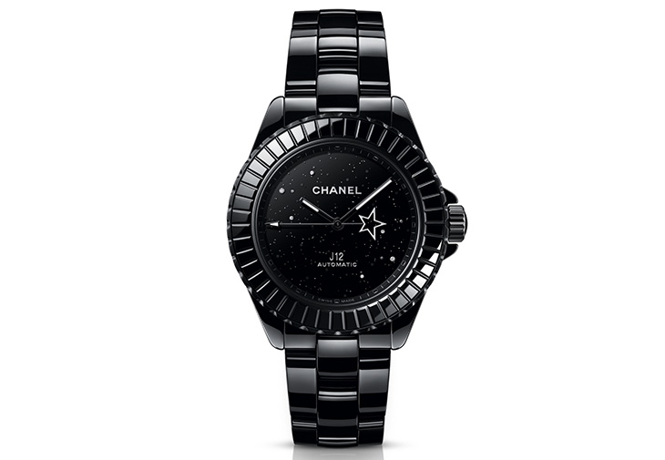 「仰望夜空或細看腕錶,所見近乎相同。J12 Night Star 腕錶的錶盤靜悄悄地偷走星夜的一部分。我看到深邃夜空的滿佈星辰,一顆流動的彗星掠過,並將之移置到腕錶上。一顆五芒星在閃爍的鑽石錶盤上轉動,在黑夜中閃耀著時間。此作品匯集了香奈兒女士鍾愛的元素,結合長階梯形切割鑽石與她的幸運彗星符碼,宇宙元素設計始終帶來好運。」─香奈兒腕錶創意工作室總監Arnaud Chastaingt