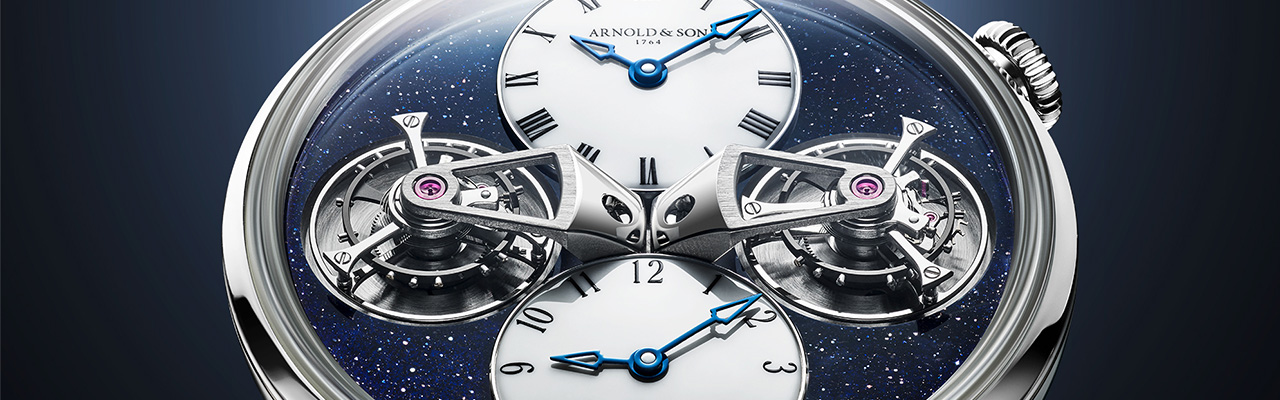 向來以藝術和工藝聞名的瑞士亞諾表ARNOLD & SON,旗下最精采作品「雙陀飛輪兩地時珍藏腕表」(Double Tourbillon ),以蒼穹和大地為靈感,推出稀有獨特曠世傑作,分別以藍色砂金石款(Aventurine)以及孔雀石(Malachite)款作為錶面盤,雙陀飛輪與獨立雙時區卓越設計,再搭配珍稀面盤,成為下一個經典傳世之寶。