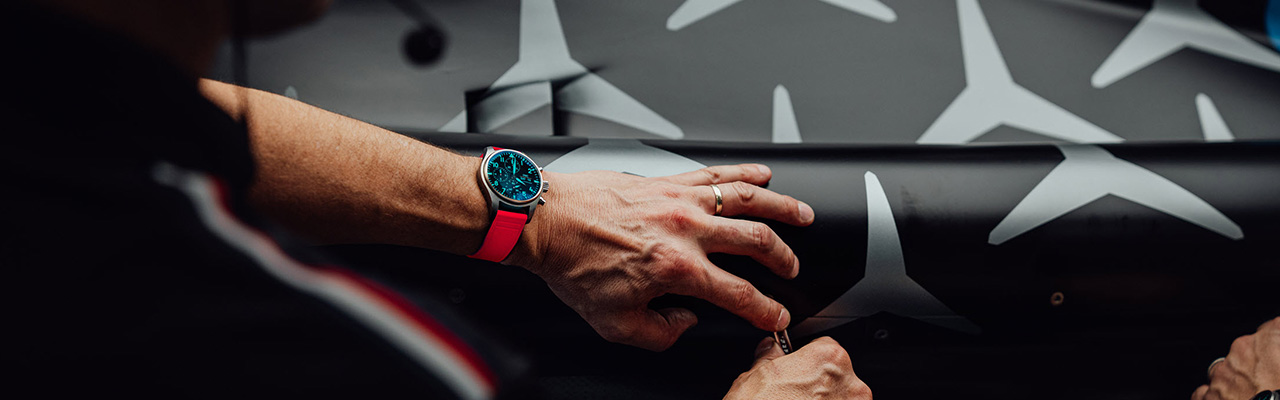 飛行員計時腕錶41 Mercedes-AMG馬石油F1™車隊特別版於一年前在首屆邁阿密大獎賽™推出,採用格外堅固的5級鈦金屬製成。IWC萬國錶於1980年代率先在製錶上使用這種材質,推出全世界首枚鈦金屬錶殼及錶鏈的腕錶。