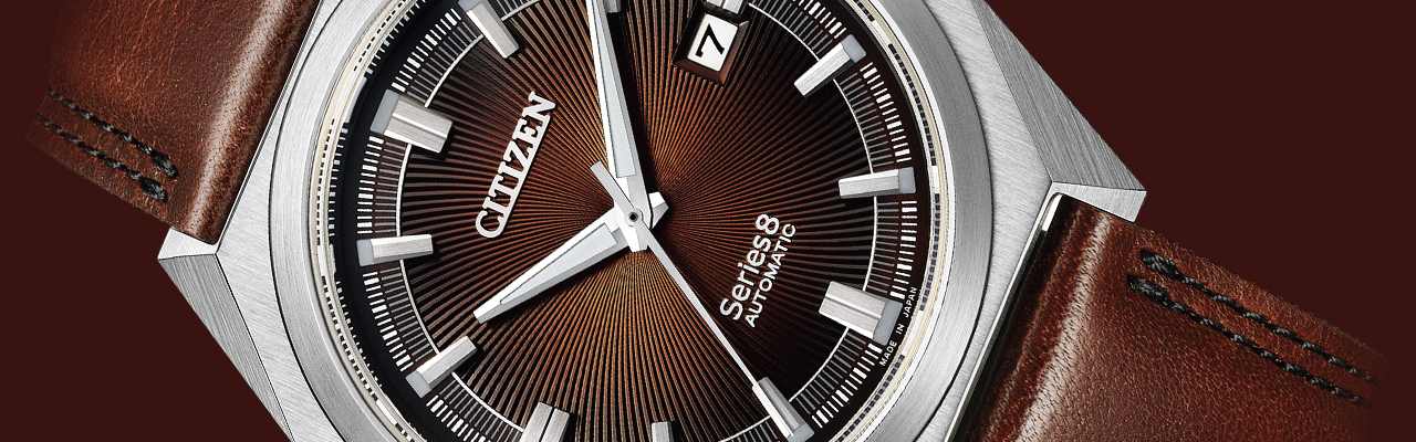 隨著這兩年CITIZEN強勢進軍機械錶市場,品牌旗下的機械錶款也越來越豐富。2023年品牌為定位在中高階的Series 8系列推出胡桃木新色錶款。錶款隸屬於831系列,搭載9051自動機芯。這枚機芯由於安裝抗磁的游絲和零件,大幅提升了抗磁性能,其抗磁高達16,000A/m,因此當靠近產生磁場的設備接近1公分距離,也不會影響到機芯正常運作,至於其精準度則為日誤差-10~+20秒。依循831系列的系列標誌,此錶採用切角俐落的八角造型錶殼以及錶冠位置的梯形護橋結構,而面盤則是搭配全新的胡桃木色彩,帶出沉穩的紳士感覺,面盤上還有做放射狀線條裝飾。