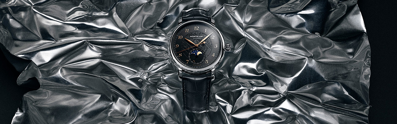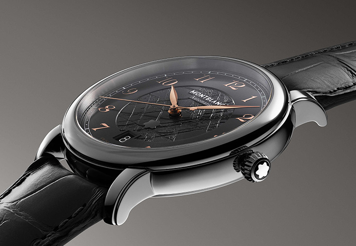採用精鋼錶殼、鍍玫瑰金指針和阿拉伯數字,搭配奪目的霧岩灰冰川圖案錶盤。秒針和錶盤的日期窗上方均飾有MONTBLANC標誌,兩者在每一分鐘將會重疊。