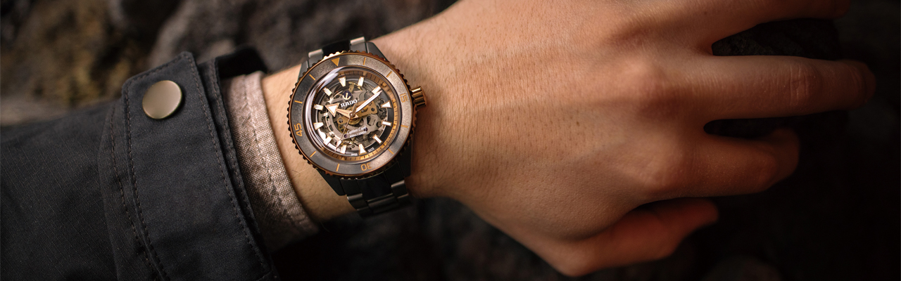 雷達表RADO庫克船長系列自2017年復出以來深受好評,如今有不鏽鋼、青銅和高科技陶瓷等多種錶殼的版本,最新發表的庫克船長高科技陶瓷鏤空腕錶用碳灰及金屬色調的電漿高科技陶瓷製作錶殼、鍊帶,並在許多細節綴以金色元素,整體流露神祕而高貴的氣質。值得特別注意的是,看似拋光不鏽鋼的鍊帶中節也是陶瓷,腕錶的重量比想像還輕,再加上符合人體工學的設計,配戴手感非常好。