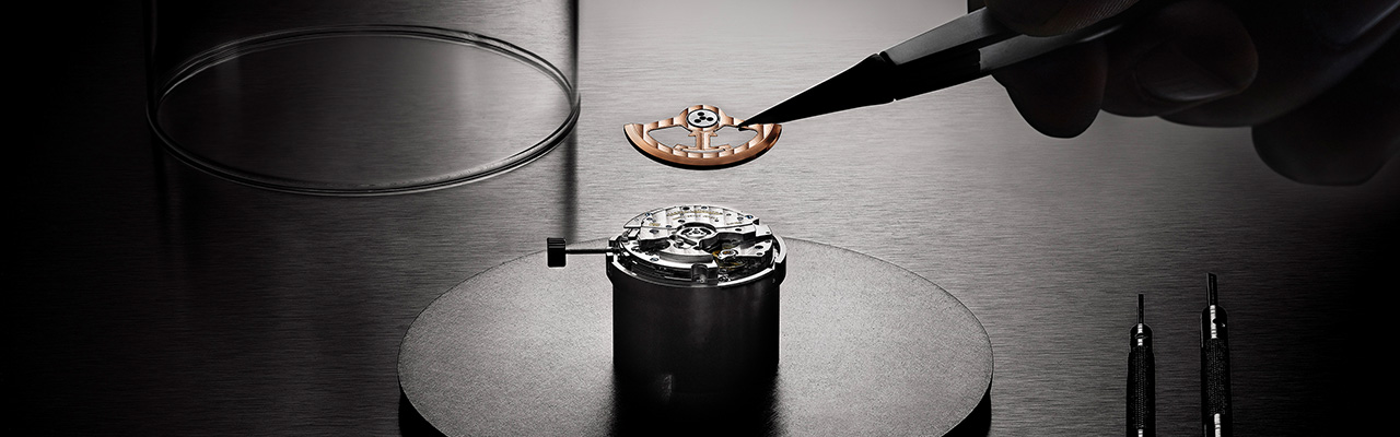 透過藍寶石水晶玻璃底蓋,機芯的精美潤飾一覽無遺,包括日內瓦飾紋(Côtes de Genève)、藍化處理的螺絲,以及鐫刻「JL」標誌的積家經典鏤空金質擺陀。與所有積家機芯一樣,這款機芯完全由位於瑞士汝山谷勒桑捷(Le Sentier)的積家大工坊自主設計、製作、潤飾和組裝。