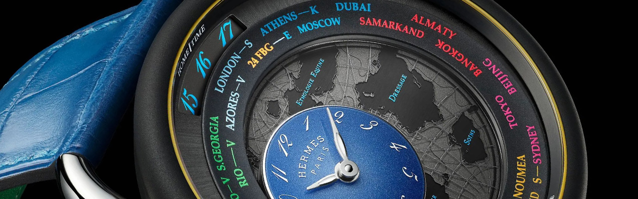 一個如同受引力作用的副錶盤懸浮穿越各大陸,從一個城市移動到另一個城市,飛越不同時區。隨著它的遷移,手錶的外觀發生了變化,開啟了全新的次元。衛星式副錶盤彷彿飄浮在由Jérôme Colliard 為愛馬仕絲巾所設計的Planisphere dun monde équestre 奇幻馬術世界地圖上。這種獨一無二的詮釋,帶領您穿越愛馬仕的想像世界。