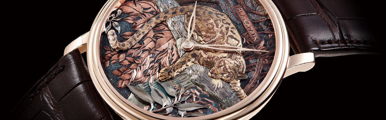 似乎是從大馬士革鑲金開始,寶珀BLANCPAIN開始將許多少見的傳統金屬工藝引入面盤上。其中Shakudo赤銅雕繪便是品牌近年常用的技術。