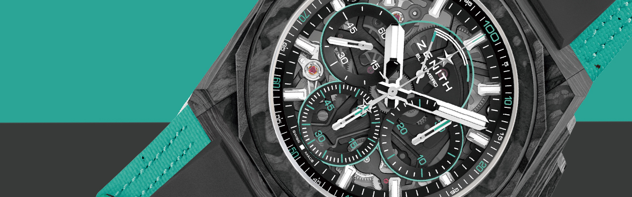 2023年真力時ZENITH為在蘇格蘭舉辦的Extreme E電動車越野錦標賽第三賽季Hydro X Prix賽事推出限量錶款─DEFY Extreme E Hydro X Prix限量版腕錶,這只錶款也是1/100秒計時腕錶至今最輕巧的款式。這是DEFY Extreme系列首次採用全碳纖維結構,除了錶殼錶圈,包括按把、錶冠保護裝置都使用輕巧且堅韌的碳纖維製成,因此達到從未出現的輕盈手感,全錶僅重96克,表面也呈現獨特大理石紋路。錶款面盤採多層鏤空設計,為呼應賽事於多處細節上使用其官方配色「活力綠」。在錶帶和包裝上也應用賽事回收及升級的再生材質製成,具有環保和紀念意義,僅限量100只。