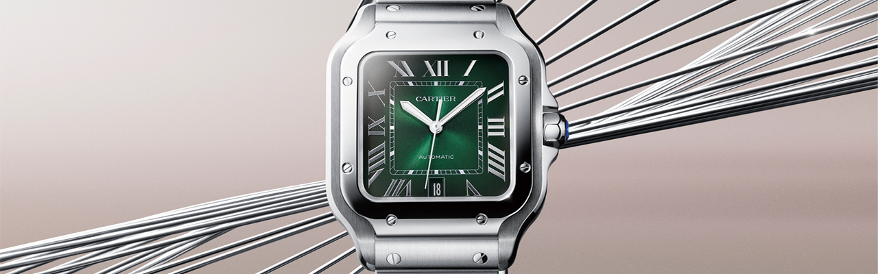 各家運動錶推出綠面款式在市場上都有不錯的迴響。卡地亞CARTIER百年經典的飛行錶Santos也在2023年推出了綠面錶款, 運用彩色真漆的通透質感與漸變設計面盤,配搭實用不鏽鋼材質,打造時髦的奢華運動風。