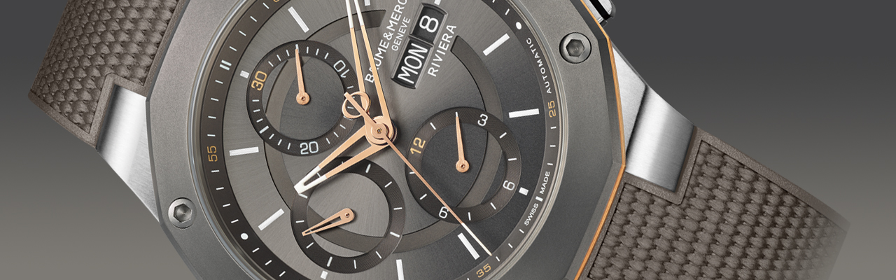 2023年名士BAUME & MERCIER為旗下王牌的利維拉系列推出雙色設計的計時碼錶款式。利維拉系列自1973年問世以來就具備獨特的十二邊形錶圈設計,系列幾經沿革在第四代運動款上出現於錶圈上加入4顆螺絲裝飾的設計。而當今的利維拉腕錶便是催生於其在外觀上做線條修正的第五代版本。這只計時款式除了使用帶有4顆螺絲裝飾的石灰色十二邊形鈦金屬錶圈,還在其下方加入一層鍍金PVD鋼圈,視覺便如金色線條般勾勒出獨特錶圈形狀。腕錶面盤和細節也以石灰色和金色做搭配。3點設置有星期和日期視窗,講究日常實用,錶款也使用便利的錶帶快拆設計。