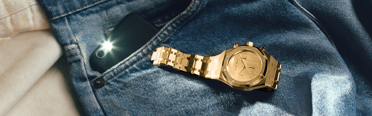 跨界聯名的兩款 Royal Oak 皇家橡樹系列新作完全以 18K 黃金製作,第一款是適合手腕較纖細人 士的 37 毫米自動上鏈腕錶,具備時、分、秒顯示功能。極簡風格錶面搭配螢光塗層黃金指針、黃 金立體愛彼標誌與移印「1017 ALYX 9SM」字樣。第二款為 41 毫米自動上鏈計時碼錶,名副其實 的極簡設計讓計時器消失無蹤,只留下三根指針於 3、6 和 9 點鐘位置旋轉計時。這兩款 Royal Oak 皇家橡樹系列獨特之作都是限量發行。