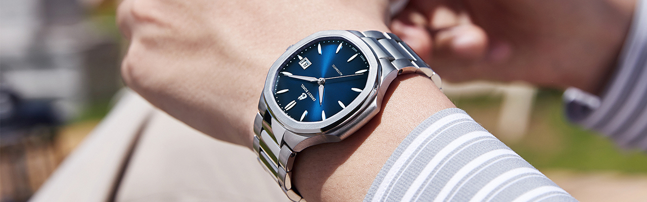 復刻品牌1975年八角形腕錶原創設計的全新縱橫四海錶款,以其極具辨識度的經典復古風格與現代的時尚元素回歸,融匯復古風韻與現代潮流。錶盤上光影流轉的太陽紋設計,從中心散發層層光芒,展現出現代感的時尚風格。漸變色澤的變化由深到淺,再由淡到濃,以顔色的漸層變化演繹出品牌寓意由浪漫的淡淡愛意,漸漸纍積堆叠出濃濃的幸福滋味。對於有滿滿的傾慕愛意,卻不善表達的含蓄男性提供了完美代言,全新縱橫四海錶款也象徵現代男性在時尚的外表下一顆浪漫的心和對幸福的永恆承諾!