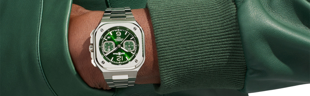 2023年錶展上公布的全新BR 05 Green Gold,以溫潤耀眼的玫瑰金搭配深綠金屬光澤面盤,塑造系列沈穩而高端性格。