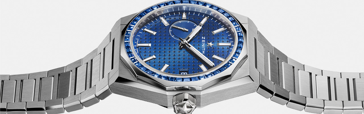 DEFY Skyline腕錶透過現代手法詮釋Zenith真力時於1969年推出的首款ZENITH DEFY腕錶,並以大膽的建築線條和堅固性能這兩大系列特色,完美融合過去與現在。以星空為靈感的深藍色調已成為眾多Zenith真力時專賣店限定款式腕錶的標誌,而DEFY Skyline Sapphire天際線系列藍寶石腕錶則以璀璨的寶石鑲嵌設計加倍彰顯其動人魅力。精鋼十二邊形錶圈鑲嵌45顆長方形切割藍色藍寶石,進一步點綴金屬藍色錶盤上的四芒星幾何圖案。腕錶隨附一體式精鋼錶鏈和一條藍色星空圖案橡膠錶帶,可在無需使用任何工具的情況下透過錶殼上精妙的錶帶快速更換系統進行替換。