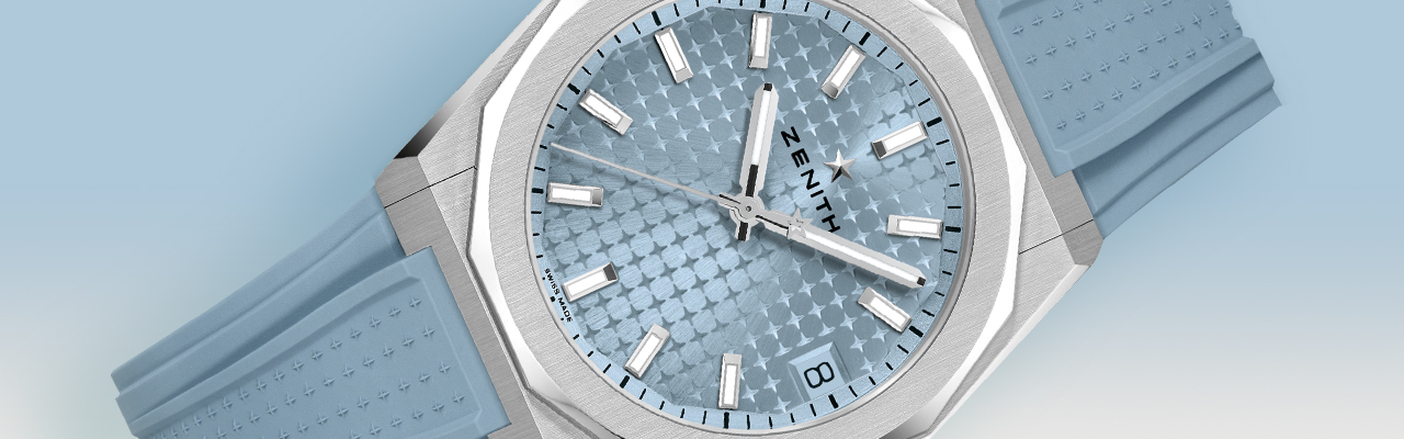 真力時ZENITH推出三只採用全新配色─冰藍色面盤的Defy Skyline天際線系列腕錶,均為專賣店限定錶款。三款中一只尺寸為41mm、兩只為稍小的36mm,分別為無鑽版與錶圈鑲鑽版本,此只為直徑36mm無鑽款。腕錶具備稜角分明的錶殼造型,配有俐落的十二邊形錶圈,其設計靈感即是源自1969年面世的早期Defy腕錶。清冷的冰藍色調為腕錶帶來優雅錶感,面盤上也運用四芒星組成的鐫刻圖案搭配太陽紋裝飾,提升細膩質感。為讓整體美感和諧一致,其面盤凸緣和日期窗都採用了同樣的冰藍色裝飾。此36mm款式僅在台中天文時創真力時實體專賣店與官方網站販售。