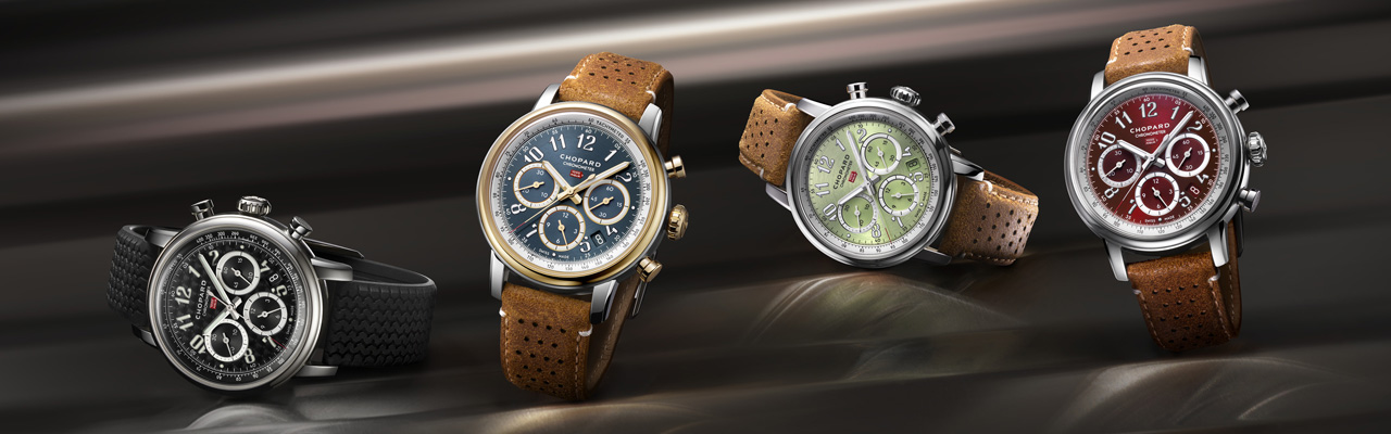 Mille Miglia一千英里古董車賽在1927至1961年間主要是在公路上進行速度車賽,時至今日已經轉為古董車拉力賽,只有參與過1927年至1957年比賽的車款才能參加比賽。車手需要在為期三天的賽程中穿越南北義大利,考驗車手的駕駛技術,而沿途的秀麗風景,也讓這場比賽被譽為「世界上最美麗的車賽」。新款Mille Miglia Classic計時碼錶在面盤上選用呼應賽車塗裝風格的彩色錶盤,包括淺綠色、櫻桃紅色、賽車黑色與藍灰色,由卡爾-弗雷德理克.舍費爾親自挑選,對比的色調不僅讓讀時更為清晰可辨,同時也重申汽車世界對腕錶設計產生的深遠影響。
