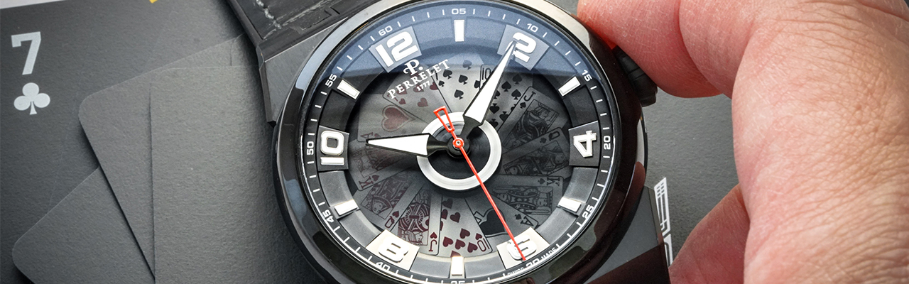 「旋風撲克大師腕錶」配備中央時針、分針和秒針,多層次的旋風面盤由防反光藍寶石水晶鏡面保護著,腕錶限量發行 50 枚。這款腕錶最搶眼的元素是帶有樸克牌圖案的下層面盤,上面有玩樸克遊戲時,令對手聞之色變的黑桃與紅心同花大順,與一對幸運7。