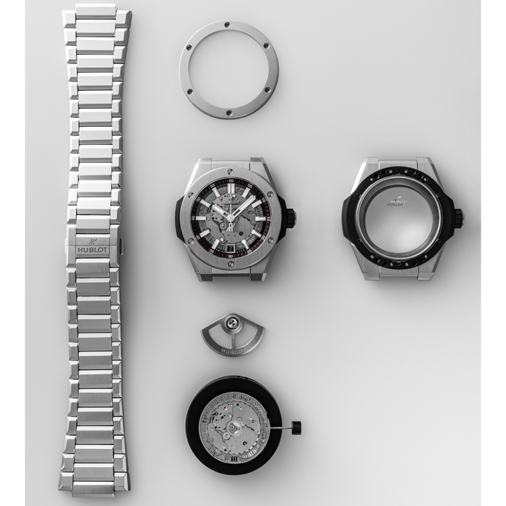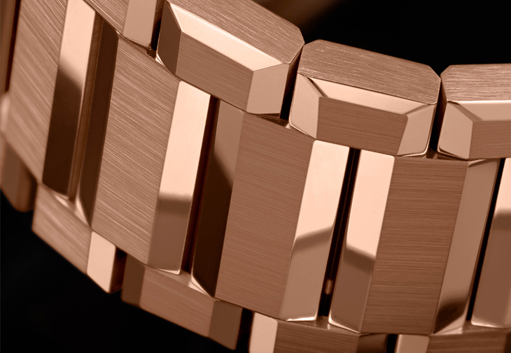 所謂「運動風格正裝鍊帶百搭腕錶」不是口號,從錶款的諸多細節設計、表面處理都能感受到宇舶不斷琢磨的設計巧思。系列延續主軸Big Bang Integrated整體式鍊帶設計元素,帶出經典感。特規的三節式鍊帶設計如同錶殼的延伸,兩側由22枚個有3個斜面倒角的鍊節連接,讓錶鍊線條更加流暢有型。也因為如此,每個鍊結形式、比例都略有不同,因此都需要獨立製作工序。此外,如同殼身不同切面有不同的打磨拋光處理,強化增加層次感,各鍊節也採同樣態度處理。因此單是外觀的製作就頗為繁瑣。尤其Time Only三針鍊帶腕錶同步推出高硬度的陶瓷、難打磨的鈦金屬,以及獨家皇金材質三種款式,每種材質製作需要注意的都不同,不過對宇舶來說,為了追求更好的配戴與賞玩體驗,這繁瑣付出都是值得的。