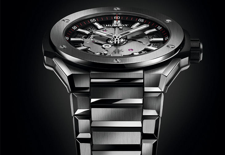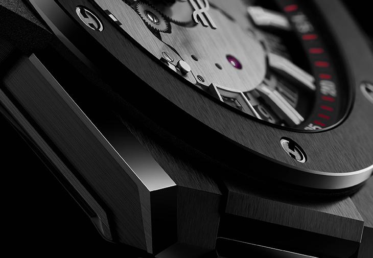 之所以生成如此性格,自然是品牌在殼身、面盤,以及鍊帶等外部設計的拿捏。首先是殼身延續Big Bang Integrated的設計特色,採整塊金屬(或高階陶瓷)製作,僅在錶圈下層加入黑色複合樹脂,錶冠則包覆天然橡膠。既保留宇舶錶款的特色,也讓殼身連結到鍊帶的視覺更顯整體。