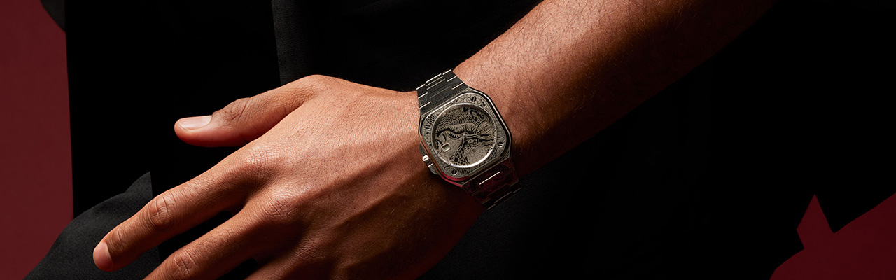 鐳射雕刻的龍年圖騰也能很有氣勢!就像這只柏萊士BELL & ROSS BR 05 Artline Dragon龍年限量腕錶,沒有過多綴飾,展現出刺青般俐落線條,僅以不鏽鋼原色與雕刻紋理的明暗呈現,即塑造出純粹樣貌,帶來強烈的視覺衝擊。