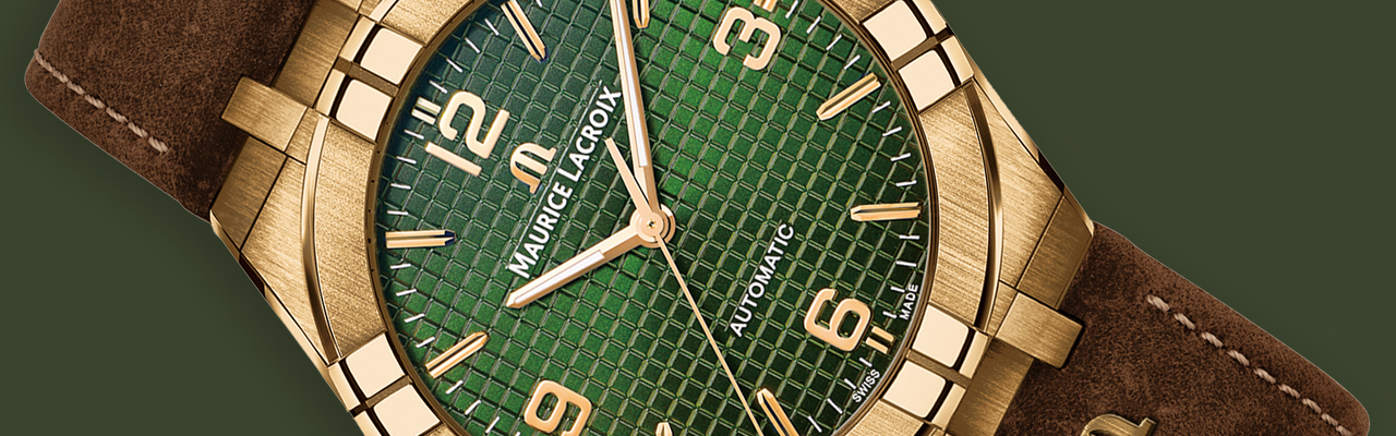 喜歡青銅材質腕錶的買家又有新選擇,艾美錶MAURICE LACROIX推出Aikon青銅自動腕錶,配搭市面上流行的綠色面盤設計,展現復古又時尚的氣質。青銅材質會隨著時間流逝,隨錶主的配戴習慣和環境的不同,呈現出獨一無二的銅鏽色澤,添上專屬個人的歷史溫度,因此讓許多錶迷愛不釋手。