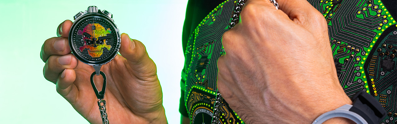 炸彈錶從創建以來,一直以勇敢冒險,挑戰未知的態度在腕錶領域闖蕩,並以大膽創意,鮮明形象建立起一席之地。全新的Cyber Skull貫徹如此態度,以品牌極具代表的骷髏圖騰為形象,結合前衛科技主題,打造屬於炸彈錶的骷髏新世代。