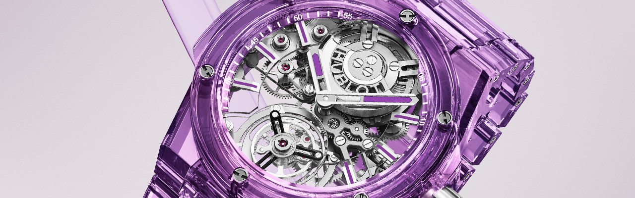 精通開創特殊材質與色彩的HUBLOT宇舶錶,再次將藍寶石融入製錶的傳奇歷程中!全新Big Bang Integrated紫色藍寶石陀飛輪鍊帶腕錶,勇於挑戰透明極限,以獨家紫色藍寶石材質,精心建構多層次立體錶殼,將特別設計的鈦金屬錶栓串聯鍊帶,營造無比貼合的佩戴體驗!同時搭載自製HUB6035陀飛輪自動上鏈機芯,憑藉著卓越的專業知識和精湛的工藝技術,宇舶鞏固了在開發製成藍寶石腕錶領域的專業地位,彰顯其高端製錶工藝的前衛美學。全球限量僅10只。