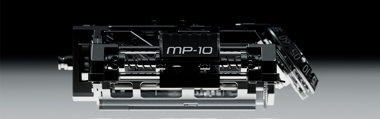 2023年宇舶接連發表MP-13與MP-15,今年才推出理當要比較前面的MP-10。 之所以跳號,主要是MP-10的研發太耗時,導致時程延誤。獨特的線性雙垂直自 動上鍊結構,讓設計充滿科技感。採用滾軸時間指示,下方為動力儲存顯示,而 最下方則是品牌首度製作,結合小秒顯示的35度傾斜陀飛輪。12點位置的錶冠 能直接連動發條盒上鍊,上鍊效率更好。限量50只。