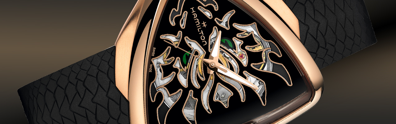 迎接2024龍年的到來,漢米爾頓HAMILTON特別為探險系列推出了以「龍」為主題打造的探險系列鏤空自動機械錶龍錶。巧妙的運用了系列標誌性的盾形外觀,漢米爾頓在錶款面盤設計勾勒出龍臉輪廓的鏤空線條,當腕錶錶冠朝上擺放時,龍面圖騰清晰可見,霸氣非常。而其下隱隱露出機械零件令整只腕錶依然具備工業風的前衛特質。