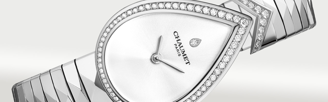 有趣的是,其錶帶特別設計成獨特的手鐲式結構,並未使用任何錶扣連結,讓腕錶以一種極盡自然的方式包覆手腕。而其梨形錶尖端與錶帶間所呈現的V字縫隙也在配戴上手時成為視覺焦點。新版本首度搭配不鏽鋼或玫瑰金鍊帶,金屬光澤為錶款帶來嶄新風貌。