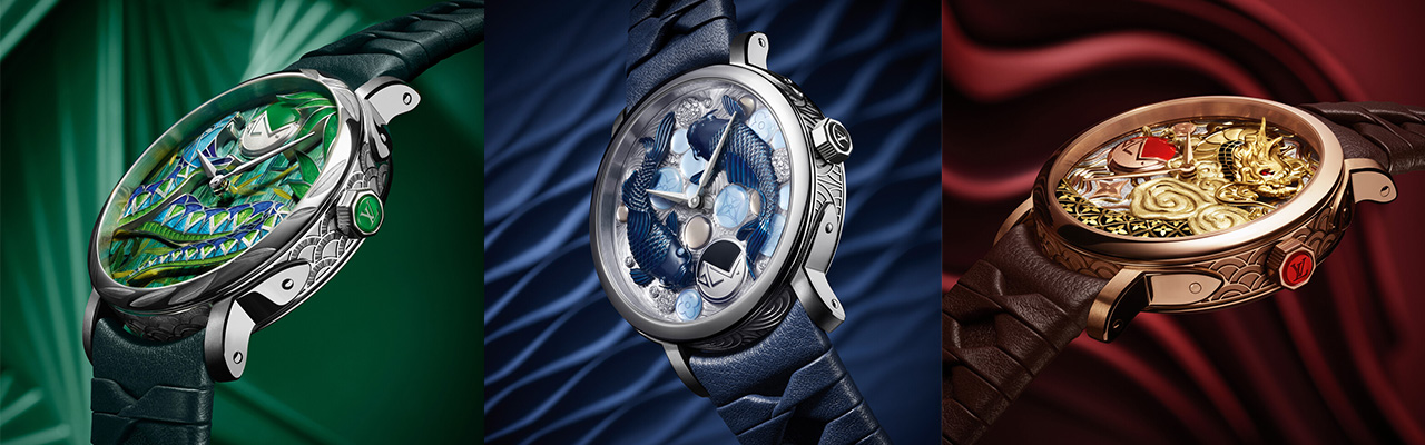 自1854 年以來,路易威登即持續研究製作行李箱的創新方法,將旅行的哲學昇華為藝術的代名詞。在 2024 年,路易威登呈獻三款精緻的全新 Escale 腕錶,每一款彷彿是自然(和夢幻)世界絢麗的織錦畫,進一步推展創意概念的境界。每一款錶款均結合多種獨特的手工技藝,是品牌工坊深入探討傳統裝飾技藝的再次突破。