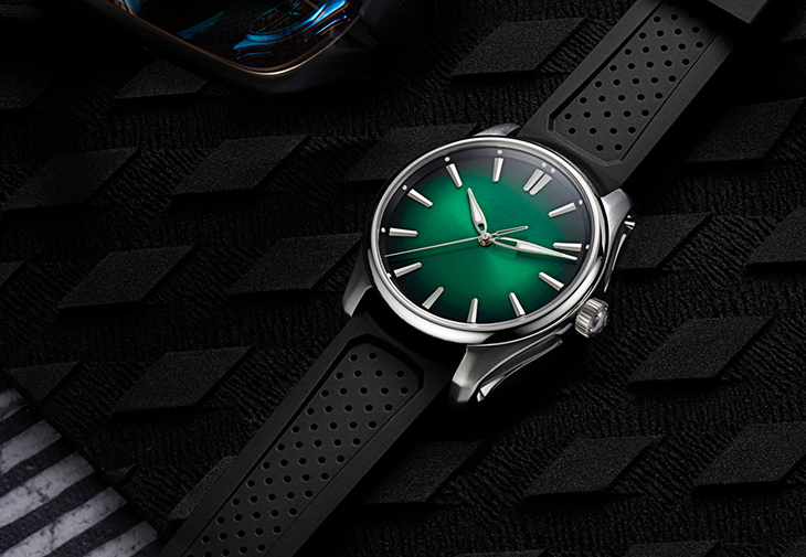 對於偏愛經典風格的人士,可以選擇開拓者大三針宇宙綠腕錶,配備40毫米不鏽鋼錶殼,錶盤上有透明漆色H. Moser & Cie.標誌及立體刻面時標。以另一種方式讓人心動!