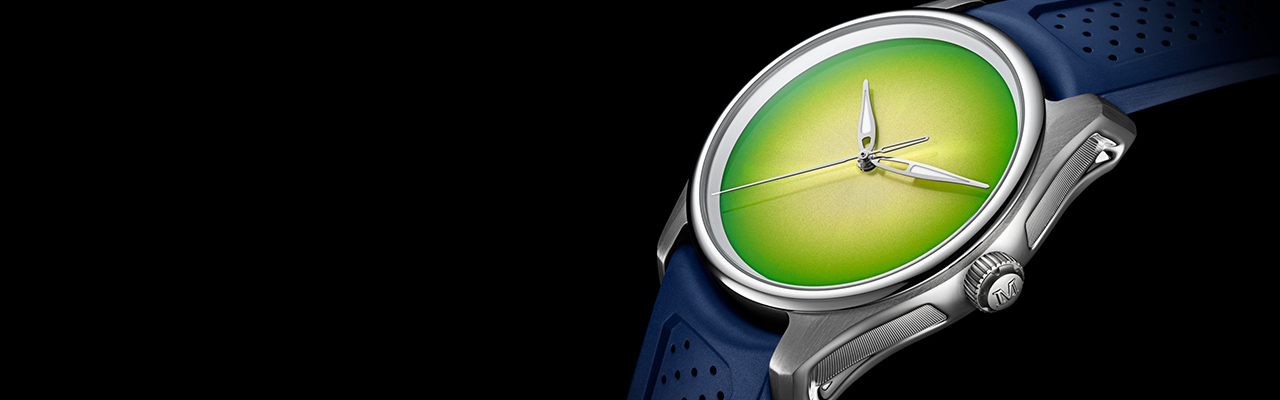 迷人至極的萊姆綠錶盤、時尚無比的橡膠錶帶:H.MOSER & CIE. 亨利慕時全新開拓者大三針柑橘綠概念腕錶(Pioneer Centre Seconds Concept Citrus Green)不僅是一枚腕錶。專為不願隨波逐流的人士打造,絕對與眾不同。當你可以改變潮流的方向,又何必跟隨他人的腳步呢?這是H.MOSER & CIE. 亨利慕時另一次漂亮的反叛逆,再次證明自己不受拘束,超越規範。不斷挑戰,一次又一次地把界線徹底粉碎。光芒四射、充滿歡 樂,完全傳達出一種氛圍:每次查看時間都讓人興奮期待。這款令人心情愉悅的腕錶,是在海邊逐浪或潛入深海120米的最佳時尚夥伴。