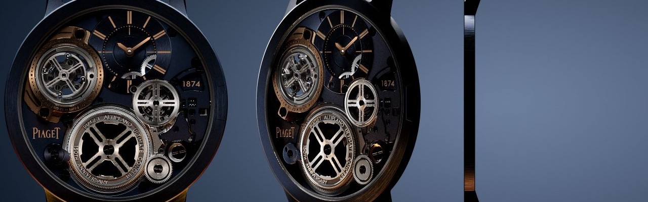 Altiplano Ultimate Concept 系列終極概念手動上鍊超薄陀飛輪腕錶的直徑41.5毫米,防水深度達20米,其鈷合金錶殼經過藍色PVD處理,是一款適於日常佩戴的時計。2毫米的厚度和環形陀飛輪更使其達到了登峰造極的境界。Altiplano Ultimate Concept陀飛輪腕錶的陀飛輪框架由環繞其周圍的橋板帶動旋轉,顛覆了當前的技術原理。