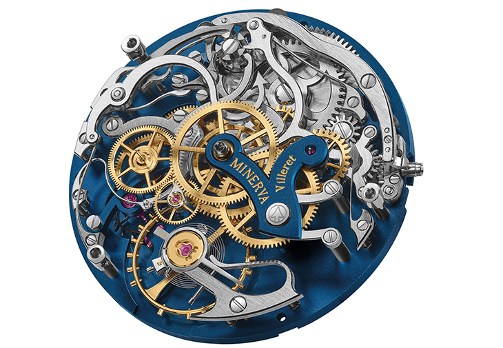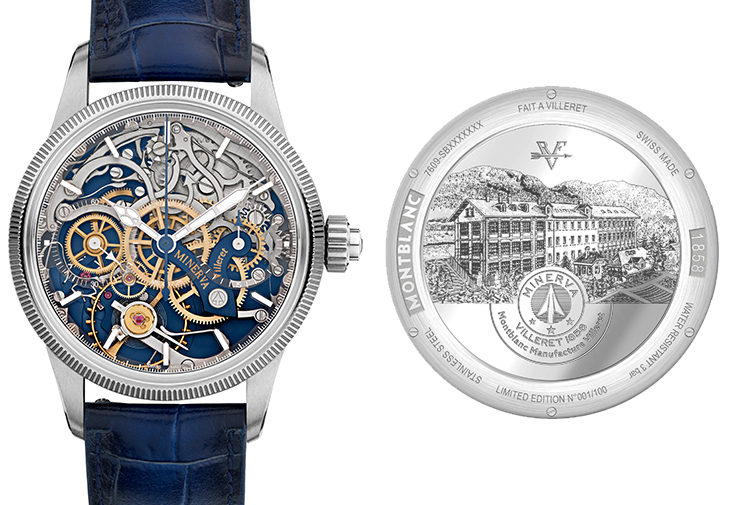 如MONTBLANC所有複雜功能機芯一樣,此機芯也展示特有的Minerva箭頭和「V」形錶橋。箭頭代表手握箭頭長矛的羅馬女神Minerva,至於與眾不同的「V」形錶橋,靈感來自維萊爾錶廠窗外的群山景色,自1858年錶廠成立至今,這景色依然如舊。