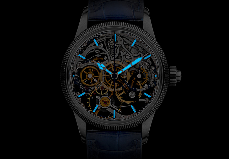 為避免搶去機芯的鋒芒,時間指示經過精心設計,配備藍寶石水晶玻璃錶盤、鏤空30分鐘計時盤、鏤空小秒針顯示,以及塗覆Super-LumiNova®夜光塗層,以提高優雅指針與時標的易讀性。