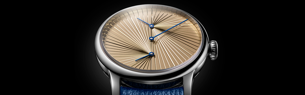 atelier oï以最基本的方式對腕錶進行設計:「如同所有的腕錶一樣,時間的顯示是以面盤為中心向外投射出去的。」我們想盡量減少面盤上的元素,如鐘錶發明前所使用的日晷一般簡單而易懂。於是,一片刻有不對稱線條的面盤誕生了,它可以反射周圍的光線並產生明顯的明暗對比,也呼應了 atelier oï設計師們對於材料運用和光影遊戲的專業與熱情。刻畫直線是所有參與建造建築的工匠們必學的基本功,如同我們運用機刻工藝最基本的技術創造了這些簡單的拋光線條,並讓這些線條在面盤上匯集成了一個空間,而這個空間上面的指針,則讓整件作品多了時間的維度。
