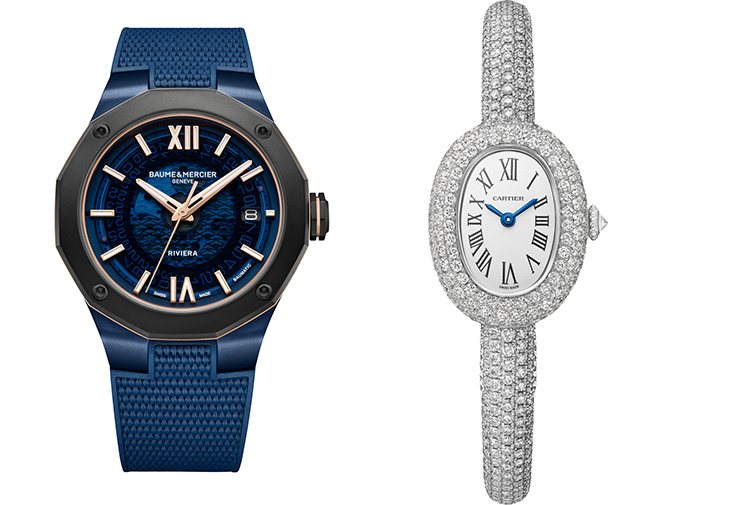 為彰顯對於TimeVallée時光天地板橋大遠百專賣店的重視,店內六大頂尖品牌也紛紛獻上自家傲人的匠心力作,成為開幕期間的鎮店之寶。BAUME & MERCIER名士Riviera利維拉系列Baumatic日曆自動上鍊鈦金屬腕錶,42毫米錶殼蘊藏多種材質運用技術,包括錶殼表面以微粒噴砂處理再覆上藍色PVD鍍層,十二邊形微粒噴砂鈦金屬錶圈,則採用灰色PVD鍍層,錶圈和錶殼中層配置PVD鍍金精鋼錶環,並以四顆噴砂ADLC碳鍍層精鋼螺釘固定,此系列經典透明山海飾紋,於煙燻藍色藍寶石水晶錶盤悉心呈現,搭配一體式快拆帆布飾面黑色橡膠錶帶及三重折疊式精鋼錶扣,整體洋溢簡約現代氣息;CARTIER卡地亞傳承百年卓越品質,專注於創意與美學之間,推出品牌專屬法式優雅的Baignoire de Cartier腕錶迷你款,搭載18K白金錶殼,錶盤及其標誌性羅馬數字時標,採用全新比例尺寸,錶鍊和圓珠形錶冠,共鑲嵌552顆、總重5克拉的圓形明亮式切割鑽石,展現極致奢華美態,乃獻給現代都會女性的腕錶首選。