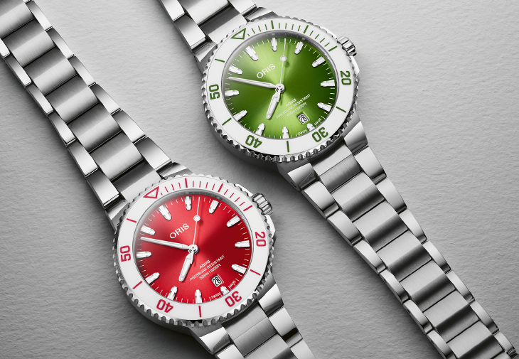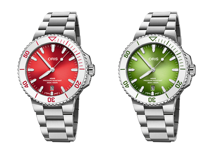 除了這款特別版腕錶,Oris還全面升級了經典的Aquis運動潛水錶系列。為迎接夏日的到來,推出了兩款41.5mm尺寸的夏日風情Aquis日期腕錶。這兩款錶盤的設計靈感來自於夏日的蜜瓜,提供了清新的西瓜綠和陽光明媚的西瓜紅兩種選擇。Aquis系列標誌性的不銹鋼錶殼和三節鍊帶設計,搭配白色單向旋轉陶瓷錶圈,展現了優雅精緻的外觀。透視底蓋設計讓佩戴者能欣賞到瑞士製造的高品質自動上鍊機械機芯,並具備30bar(300米)的卓越防水性能。
