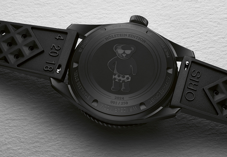 這款限量腕錶搭載了Oris自製的Calibre 400機芯,具有五日動力儲備和高抗磁性能,並提供10年的建議保養服務間隔及10年的保固(需先於MyOris註冊登錄)。錶背同樣為黑色DLC塗層,並刻有限量編號和Oris小熊的圖騰,小熊身穿花卉游泳褲和太陽眼鏡,增添了夏日的趣味。該腕錶具有10bar(100米)的防水性能,全球限量250只,可透過Oris專賣店和官方網站購買。