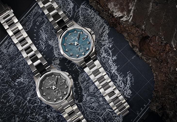 崑崙錶曾運用多種異想天開的材質於錶款製作上,因而推出許多膾炙人口的作品,包括錢幣錶、孔雀羽毛錶等,來自外太空的隕石早在1986年便被崑崙錶運用於製作腕錶。今年,隕石與身為品牌支柱之一的Admiral海軍上將系列腕錶完美融合,令人回想起品牌輝煌的製錶歷史。錶盤源自殞落於瑞典境內、擁有超過40億年歷史的隕石,有天然形成的灰原色,以及經最新科技著色的藍色款,隕石特有的魏德曼花紋清晰可見,每只都是絕無僅有的存在,配襯海軍上將標誌性的12邊形設計,以及立體雕琢的國際航海旗幟時標,充分彰顯出崑崙錶在製錶傳統的基礎上再創新局的實踐。