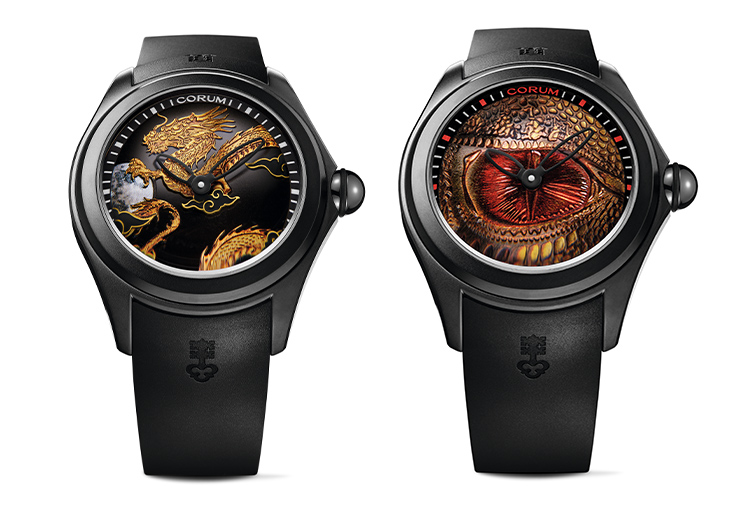 此次展出的2只限量版即完美體現泡泡錶的特色。透過圓頂藍寶石水晶玻璃錶鏡,Bubble 47金龍伴月腕錶錶盤光影顯得變幻莫測,使金龍在夜幕烏雲之間穿梭翻騰奔月的動作更顯得栩栩如生。Bubble 47金龍之眼腕錶由工匠手工雕刻的鱗片以及手繪上色的龍眼,在圓頂藍寶石水晶玻璃的放大下,更顯出金龍的力量與威嚴感,也讓配戴者能夠清楚欣賞工匠精心雕琢的細節,完美融合大膽前衛外型與精湛製錶工藝。