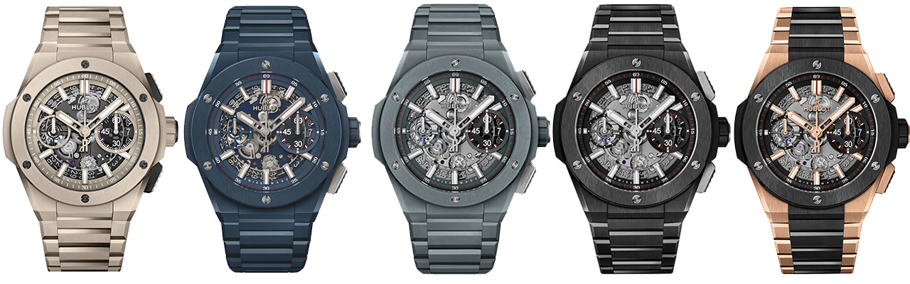 Big Bang Integrated陶瓷計時碼錶有多種顏色可選,包括魔力黑、深藍和靛藍,銀灰和沙礫色等。宇舶獨家研發的高科技亮彩陶瓷硬度是鋼的兩到三倍,但重量減輕了30%,提供了卓越的耐用性。由於其柔軟性和低導熱性,錶殼和鍊帶觸感非常滑順舒適,服貼的配戴手腕上。"Integrated"意謂腕錶的一體化流暢結構,錶帶與錶殼的第一個鍊節融合在一起,以其運動型線條和錶殼、錶帶上交替的拋光鍛面處理為特色。三節鍊帶由於特殊折角設計,隱隱散發閃耀光芒,其充滿時尚活力的外觀,不僅是外型具有鮮明色彩,更是一款可以經常佩戴的理想鍊帶運動腕錶。