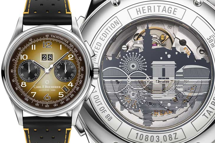 寶齊萊非常重視台灣市場,還為這只款式推出了以台灣台北、台中兩個城市為主題設計的限量款式。台北款以金棕漸層為主色調,頗有些金融中心的味道、台中版則使用漸層綠色,象徵蓬勃的活力。當然,錶背都鐫刻有當地代表地標,值得細細欣賞。
