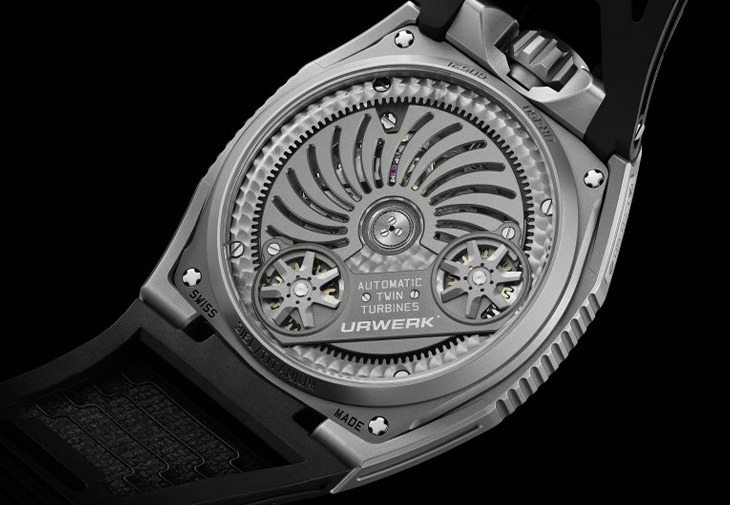 UR-150的自動上鍊系統是多項創新功能之一,這精妙設計配備雙渦輪葉,可調節擺陀的速度,提供前所未有的動能和抗震能力。Felix Baumgartner解釋:「渦輪葉可以卸去擺陀所受的震盪,避免心軸受損。」