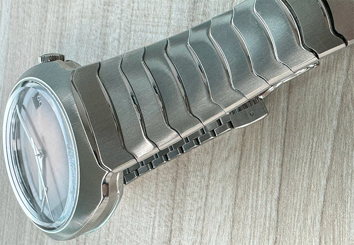 當然,它配戴起來並不只有視覺的可觀性,貼手的程度與舒適性都不在話下。只是我還真不知道,在表面都沒有螺絲的狀態下,要怎麼調整鍊帶長度?或許就是因為它的外型太酷,只負責戴的我,壓根沒想到這件事。