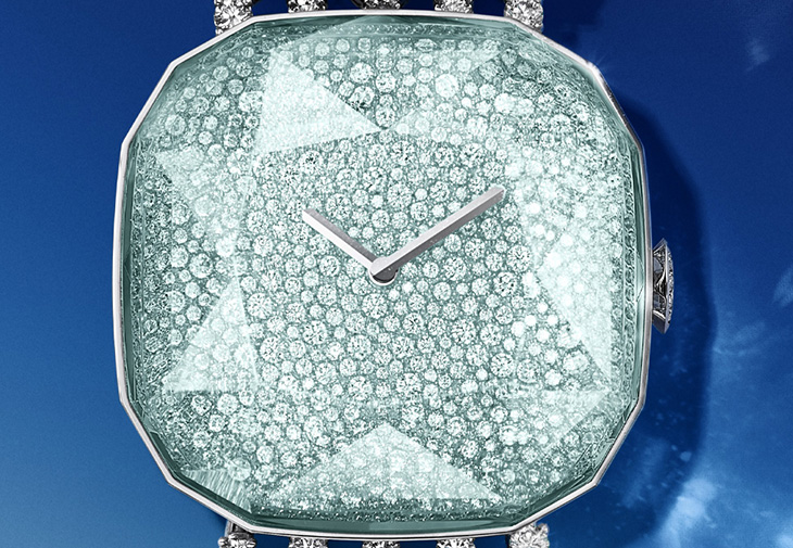2025年1月,蒂芙尼發佈一款獨一無二的Carat 128系列海水藍寶高級珠寶腕錶。該腕錶表殼直徑27毫米,採用18K白金材質精心打造,錶殼與5排錶鏈共鑲嵌897顆鑽石,總重逾29克拉。錶盤之上,是重達34.52克拉的鑽石切割形狀海水藍寶石錶殼。 蒂芙尼工匠對其進行精細琢面,不僅再現了蒂芙尼傳奇黃鑽經典的刻面設計,亦創造出更加深邃的視覺效果。錶盤與錶殼均運用雪花鑲嵌工藝,分別鑲嵌了382顆總重1.2克拉的鑽石和255顆總重0.7克拉的鑽石,每顆鑽石皆根據5種不同大小精心排布。 錶冠採用18K白金材質,鑲嵌9顆圓形明亮式鑽石。