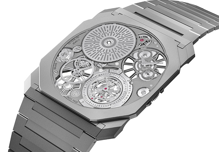 寶格麗的超薄製錶征途始於 2014 年 Octo Tourbillon手動上鍊陀飛輪腕錶,自此不斷突破疆界,創下紀錄。2016 年推出世界最薄三問報時腕錶 (機芯厚度 3.12mm);2017 年推出 Octo Finissimo Automatic超薄自動腕錶(機芯厚度 2.23mm);2021 年,發表超薄萬年曆腕錶 (機芯厚度 2.75mm),更以該錶款榮獲日內瓦鐘錶大賞GPHG金指針獎 (Aiguille d’Or)。