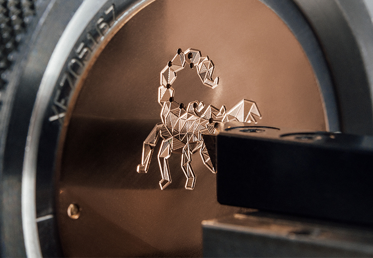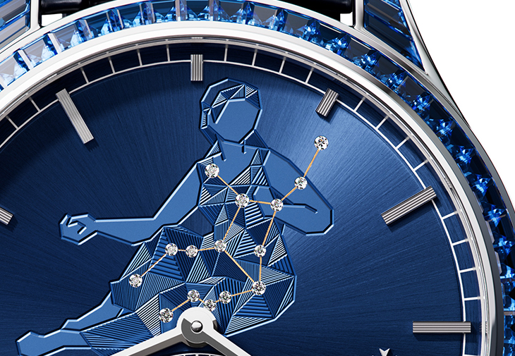 而在這其中雙子、處女、射手以及水瓶座還需要另外在肌膚部分另外進行名為乳光裝飾的拋磨處理,帶來相對輕柔的質感。之後,品牌則要再運用機刻雕花技法,以規律的幾何斜線為星座圖案帶來光影感進而形成更立體的視覺效果(想像素描)。而值得一說的是這次所運用的機刻雕花技巧,是由品牌工匠開發出的全新「位圖式機刻雕花(Figurative Guilloché)」,有別傳統機刻雕花往往是規律循環的大面積幾何圖案,江詩丹頓的工匠則將之縮現在極小的三角形區塊內,並以不同的角度、方向創造光影落差。雖說線條相對單純,但卻更需費心耗神,品牌表示單一面盤的雕花就需耗費約16個工時,這還不包括其他處理。