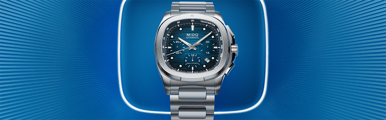 美度MIDO 在 2025 年在泰國曼谷舉辦全新 Multifort TV Chronograph 計時碼錶的亞洲首發,正式讓「電視殼型」Multifort TV 迎來問世半世紀以來第一款計時作品,也宣告這個方形運動系列從大日期進化到計時新章。延續 1973 年 TV Shape 方形弧面錶殼與漸層橫紋面盤設計,新作結合三眼計時布局、Super-LumiNova 立體時標與 Caliber 60 長動力自動計時機芯,兼顧復古電視語彙與現代細節打磨。